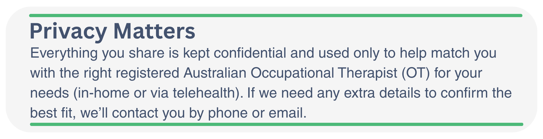 No stress. Submit the form and we’ll help you work out whether OT is the best fit—or if another support (speech, psych, support coordination) makes more sense for your goals.